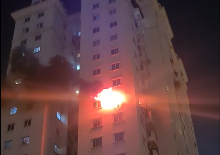 Vụ cháy xảy ra tại căn hộ tầng 9, toà CT13A, khu đô thị Ciputra (khu đô thị Nam Thăng Long, đường Võ Chí Công, quận Tây Hồ) lúc 20h24 ngày 24/10.