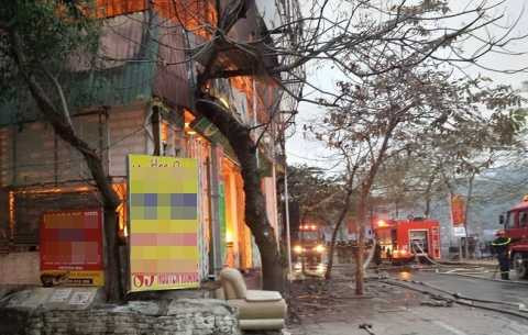 Một vụ hỏa hoạn xảy ra vào khoảng 5h40 phút sáng nay (11/2), từ số 93 đến số 99 phố Nguyễn Khang (quận Cầu Giấy, Hà Nội) thiêu rụi nhiều ki ốt.