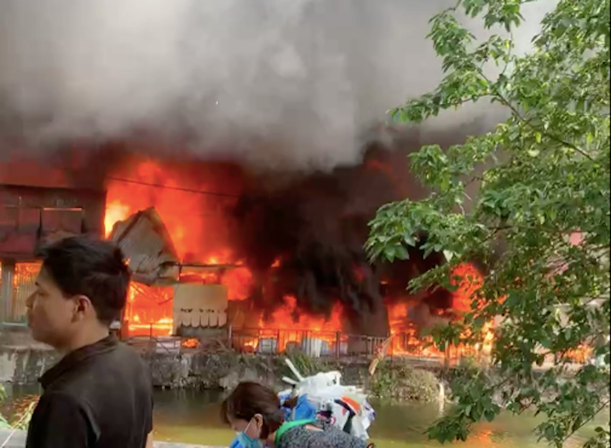 Ngọn lửa ngùn ngụt thiêu cháy khoảng 300m2 nhà xưởng/