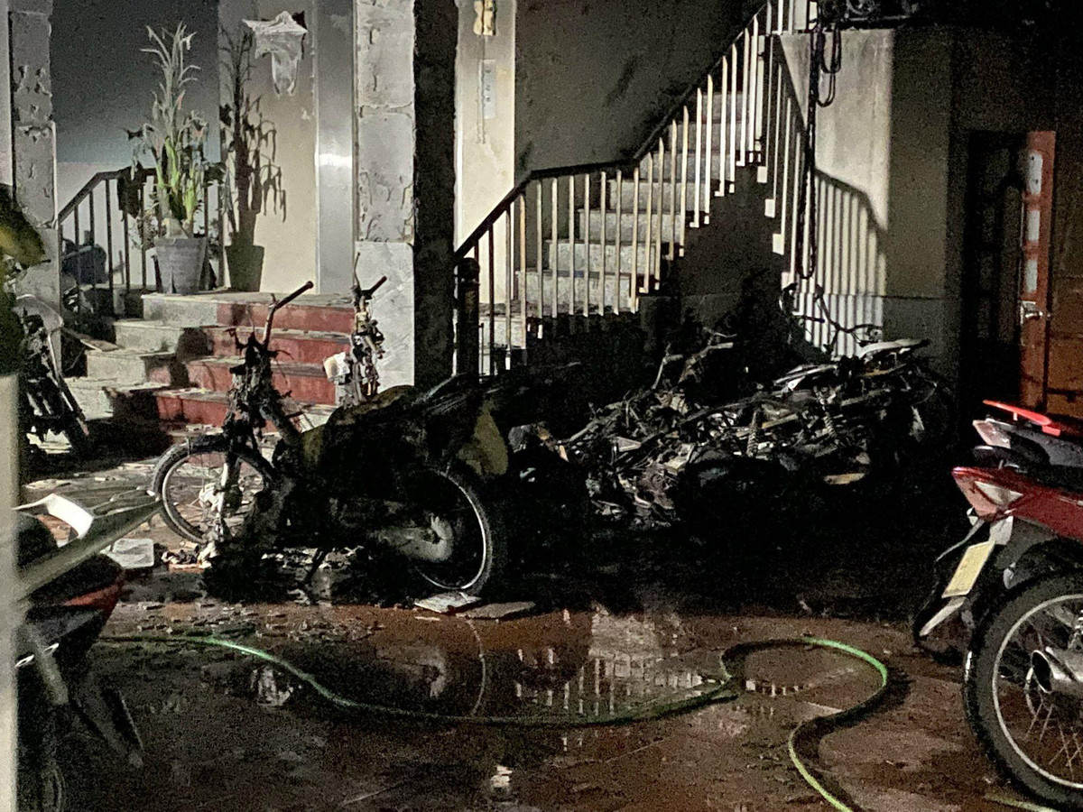 Tại hiện trường ghi nhận có khoảng 4 xe máy cháy rụi, dãy xe máy khoảng hơn 10 chiếc đối diện đã được cứu chữa kịp thời.
