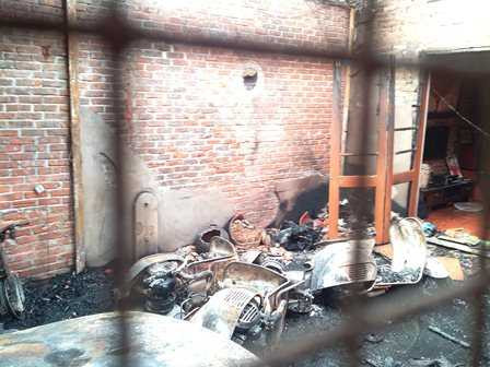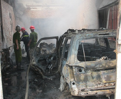 Ngôi nhà bên cạnh bị lửa cháy lan, 1 chiếc ô tô và 5 xe máy để ở sân nhà bị thiêu rụi hoàn toàn. Một số vật dụng khác trong ngôi nhà cũng bị hư hỏng.
