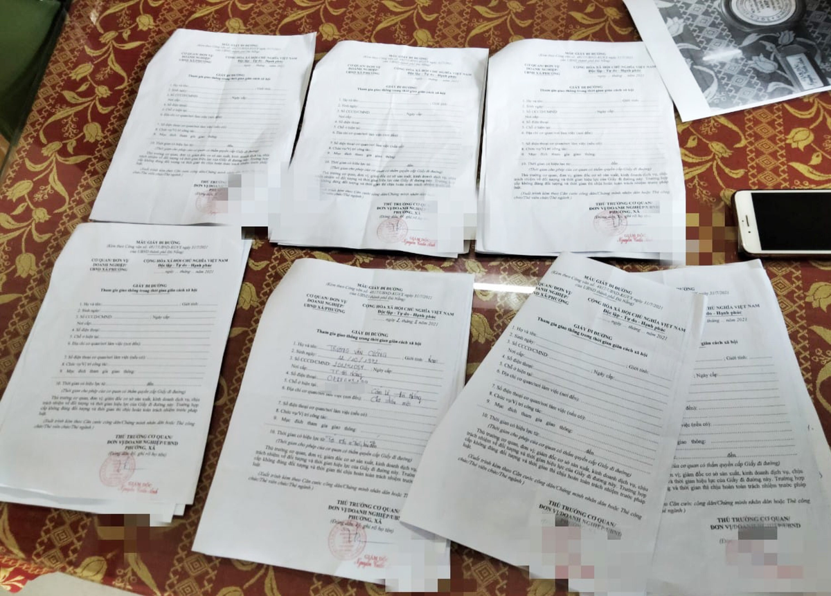 Tại đây, cả 3 người khai nhận mua 9 giấy đi đường với giá 12 triệu đồng ở cửa hàng cầm đồ số 508 đường Láng, quận Đống Đa.