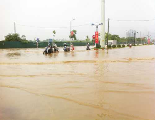 | Nhiều tuyến phố Hà Nội chìm trong biển nước. |