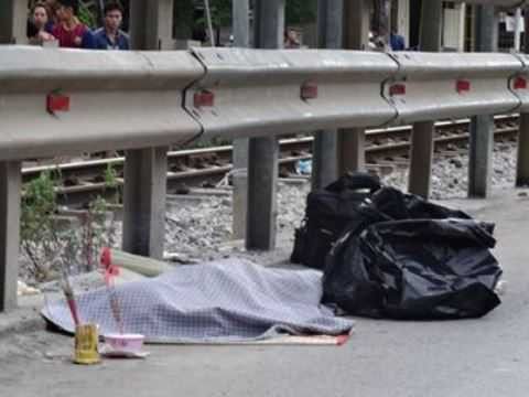 | Thi thể cô gái xấu số được người dân chuyển ra phía đường Ngọc Hồi |