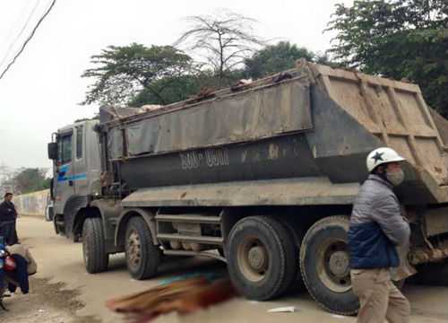 Lúc này, chiếc xe tải chở đất cho công trình tổ hợp căn hộ Goldmark City (ngõ 136 đường Hồ Tùng Mậu, quận Nam Từ Liêm) chạy ngay phía sau với tốc độ nhanh.