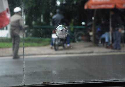 Ngay sau khi sự việc xảy ra, công an đã khám nghiệm hiện trường. Theo nhận định ban đầu, vết thủng ở cánh cửa kính là do đạn bắn.