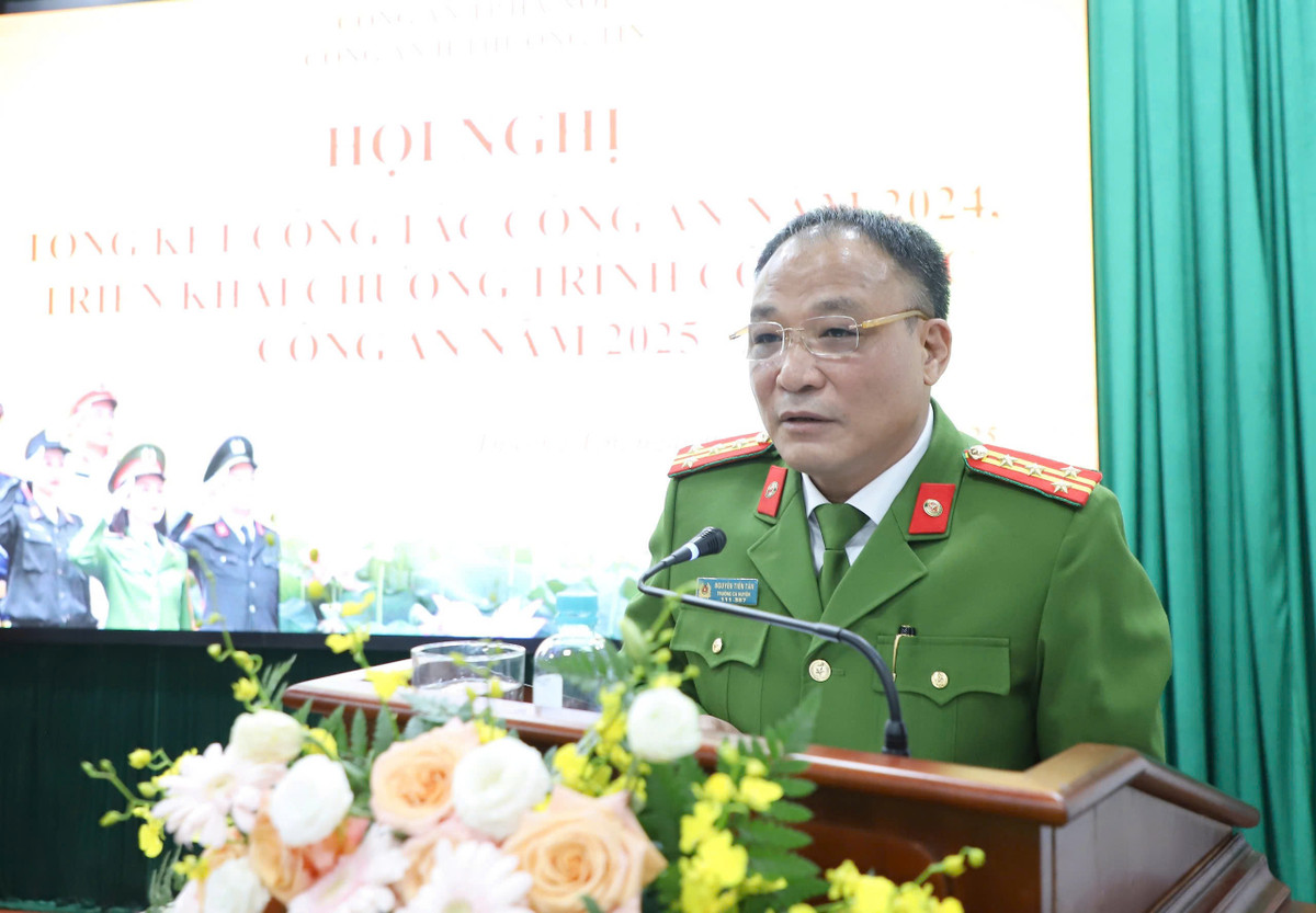 Phát biểu chỉ đạo tại hội nghị, ông Nguyễn Tiến Minh, Bí thư Huyện ủy Thường TÍn biểu dương những kết quả mà cán bộ, chiến sỹ công an huyện đạt được trong năm 2024.