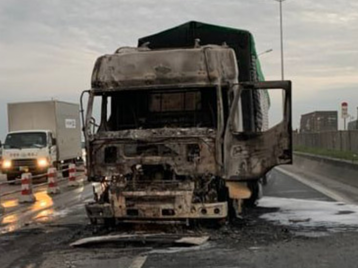 Sáng 10/11, xe container do tài xế N.Đ.Q. (SN 1990, ở Gia Lâm, Hà Nội) cầm lái đang đi trên cầu Thanh Trì thì bốc cháy ngùn ngụt.