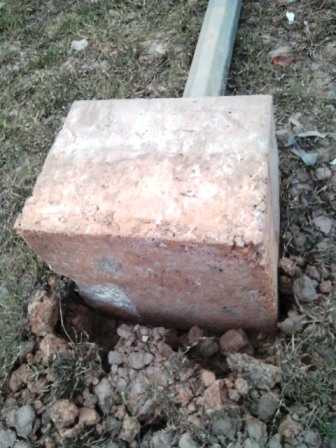 Cột đèn bị đổ để lộ ra ở phần chân chỉ là một khối bêtông dài và rộng khoảng 40cm, dày khoảng 30cm, được chôn tạm bợ xuống nền đất, không hề được gia cố thêm bằng bê tông.