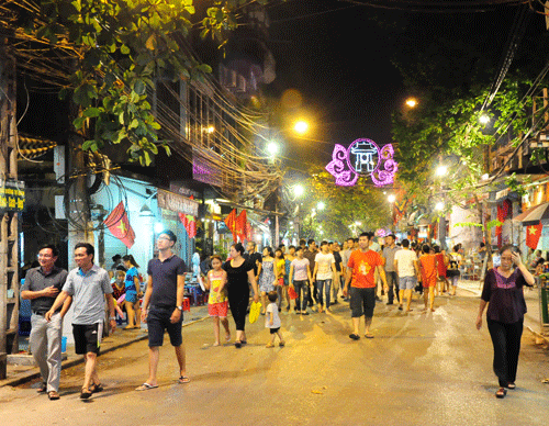 | Du khách thăm quan phố đi bộ mở rộng thuộc khu bảo tồn cấp I phố cổ Hà Nội. |