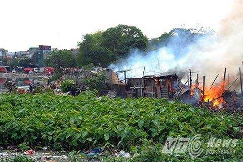 Khoảng 13 giờ 40 phút ngày 13/5, một ngọn lửa bất ngờ bốc lên dữ dội tại khu vực nhà tạm ven hồ Linh Quang (Khâm Thiên, Hà Nội).