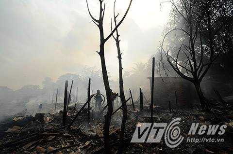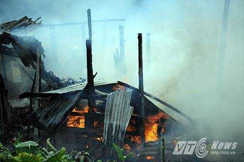 Theo quan sát của PV VTC News, khu nhà trọ chủ yếu được xây dựng bằng vật liệu gỗ, tre, khiến đám cháy càng dễ lan rộng.
