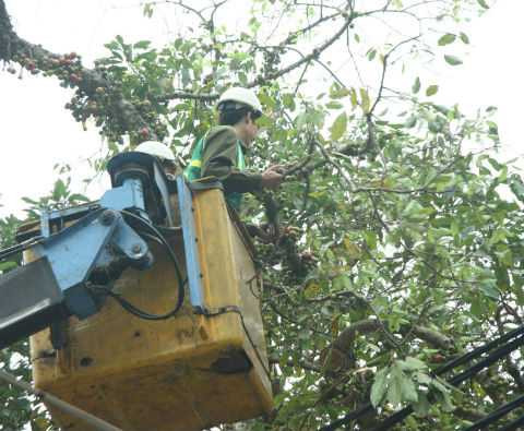 | Công nhân đang cắt tỉa cây. |