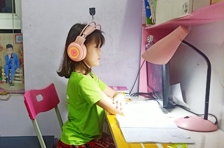 Học sinh Trường Tiểu học Ái Mộ A, quận Long Biên học trực tuyến.