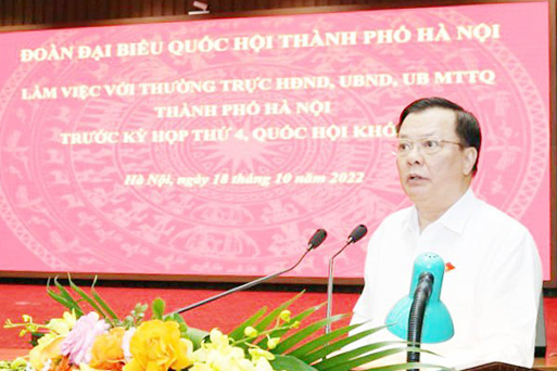 Trước đó, tại buổi làm việc, báo cáo về tình hình kinh tế, xã hội, an ninh, quốc phòng thành phố, Phó Chủ tịch UBND thành phố Hà Nội Nguyễn Trọng Đông cho biết, quý III và 9 tháng năm 2022, kinh tế Thủ đô phục hồi và tăng trưởng mạnh mẽ. Tổng sản phẩm trên địa bàn (GRDP) quý III tăng 15,71%, lũy kế 9 tháng, tăng 9,69% so với cùng kỳ, là mức tăng cao nhất trong nhiều năm trở lại đây. Tổng thu ngân sách nhà nước trên địa bàn thực hiện 243.911 tỷ đồng, đạt 78,3% dự toán, bằng 112,3% so với cùng kỳ. Chi ngân sách địa phương thực hiện 48.672 tỷ đồng, đạt 45,5% dự toán, bằng 109,8% so với cùng kỳ năm 2021.