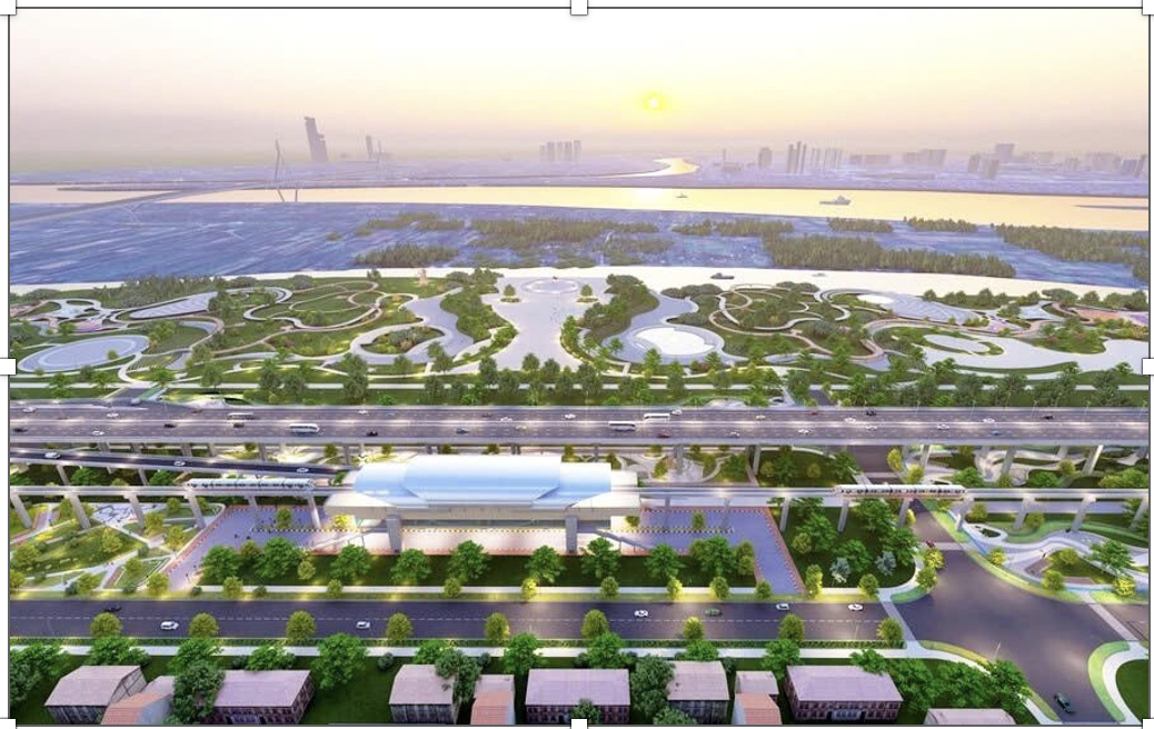Monorail đi trên dải phân cách trung tâm, có dự phòng tuyến đường sắt đô thị đi ngầm kết nối vùng như Hưng Yên, Phú Thọ. Các hạng mục chi tiết sẽ tiếp tục được nghiên cứu, bảo đảm đồng bộ với mạng lưới đường sắt đô thị, tổ chức không gian – kiến trúc cảnh quan, quy hoạch sử dụng đất và dân số dọc sông, đồng thời đảm bảo tính khả thi.
