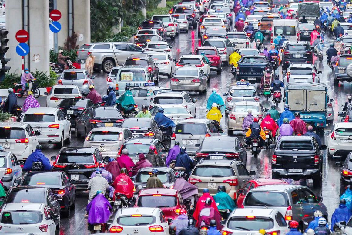 Sở GTVT đề xuất chia ô tô, xe máy đi theo làn đường dành riêng trên đường Nguyễn Trãi. (Ảnh: Đắc Huy)