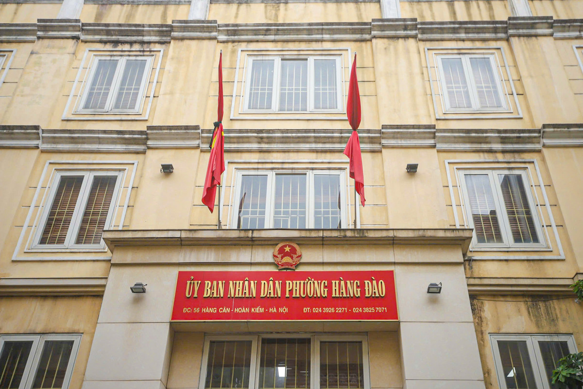 Cờ Tổ quốc được gắn dải băng đen tại trụ sở Quận uỷ Hoàn Kiếm.