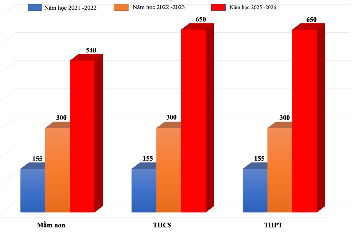 Như vậy, năm học tới học phí tăng gấp đôi so với 2021 - 2022, học phí tại các trường công lập chưa tự bảo đảm chi thường xuyên với lớp mẫu giáo 5 tuổi và THCS, giáo dục thường xuyên cấp THCS đóng 155.000 đồng/tháng ở vùng thành thị, 75.000 đồng/tháng ở vùng nông thôn và 19.000 đồng/tháng ở miền núi.