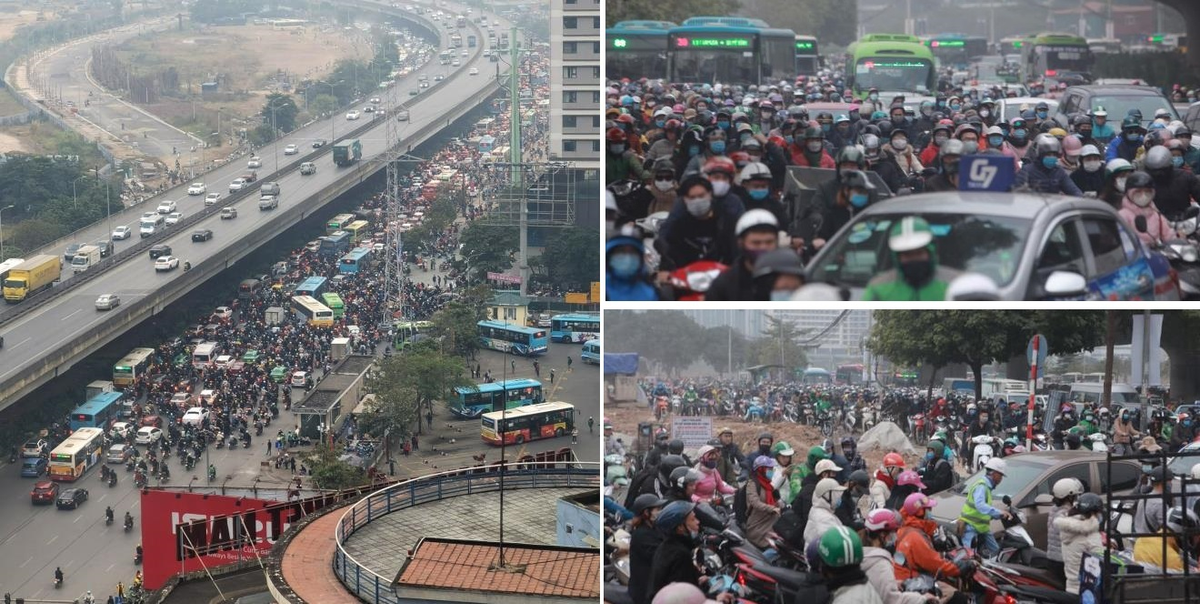 Lớp người chen chân dưới đường Phạm Hùng. (Ảnh: Hồng Phú)