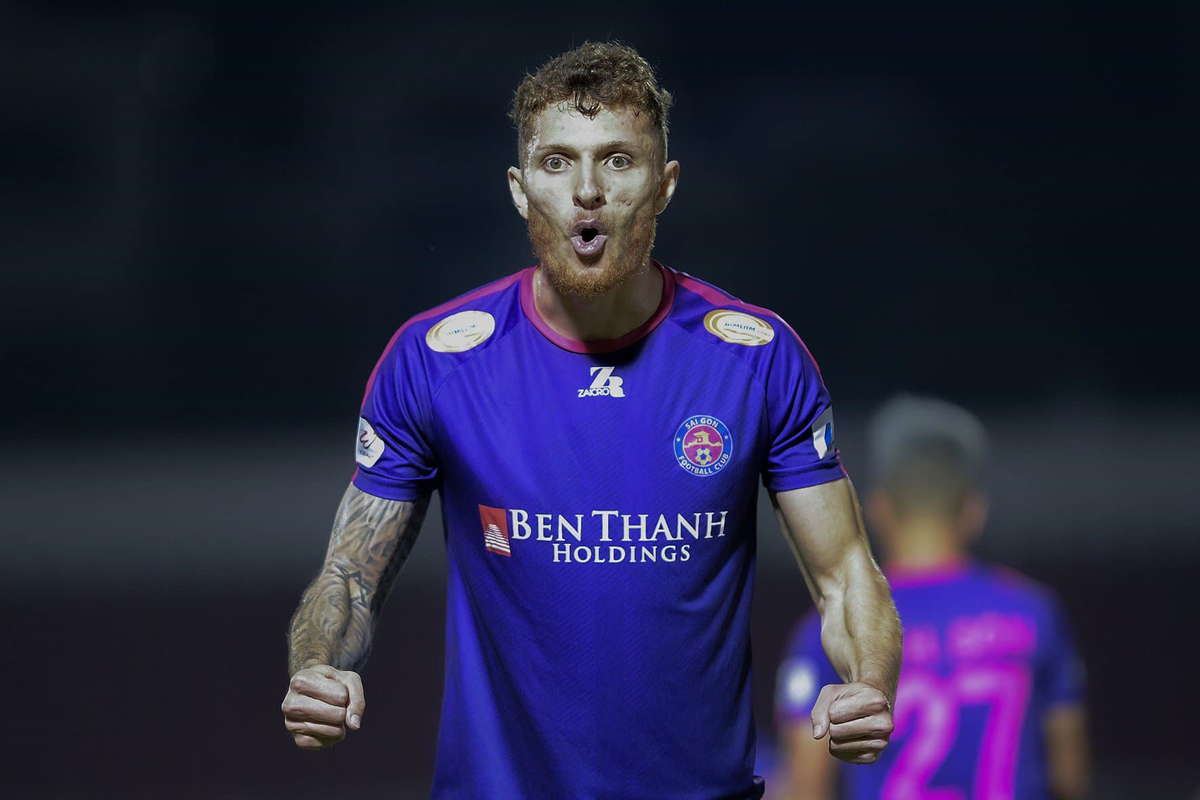 Geovane ăn mừng bàn thắng vào lưới Hà Nội FC.