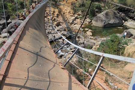 Hình ảnh cầu treo Chu Va 6 bị lật nghiêng khiến 8 người chết và 38 người bị thương. Ảnh: Khánh Công