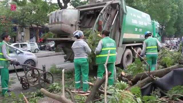 Sau cơn dông khủng khiếp chiều tối 13/6, người dân cùng lực lượng chức năng, công nhân vệ sinh môi trường... tích cực dọn dẹp, khắc phục hậu quả.