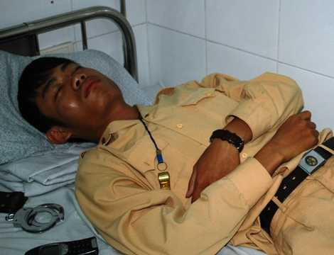 | Sau khi bị tấn công, Thượng sĩ CSGT Lương Đình Hải phải nhập viện. |