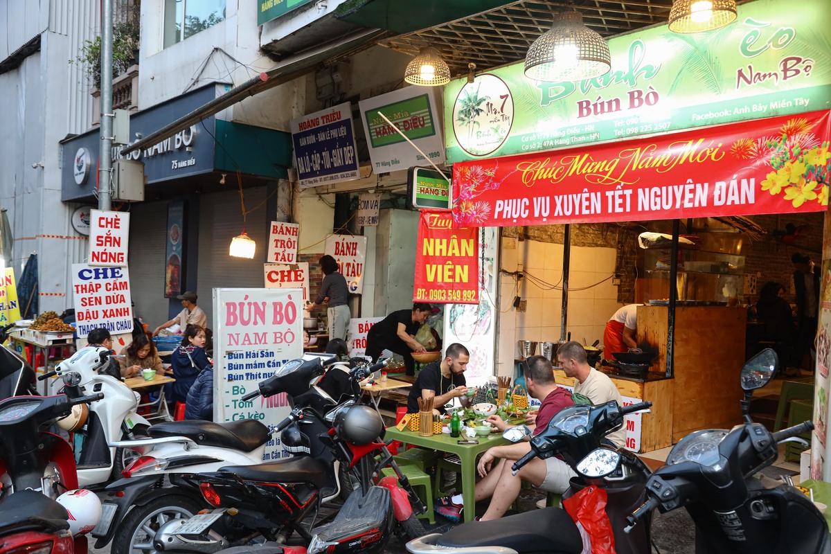 Nhiều hàng quán thông báo mở xuyên Tết, thu hút nhiều người dân Thủ Đô, và du khách nước ngoài lui tới thưởng thức.