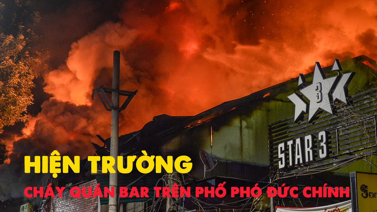 Quán bar trên phố Phó Đức Chính (Hà Nội) bốc cháy dữ dội hơn 3 tiếng đồng khiến nhiều tài sản bị thiêu rụi, hiện trường ngổn ngang gạch đá.