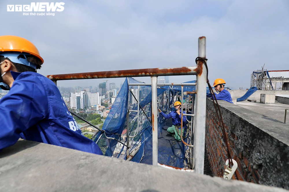 Cụ thể, giai đoạn 1 thực hiện vào năm 2016 đã tháo dỡ phần tum thang và tầng 19. Giai đoạn 2, năm 2020 với việc tháo dỡ toàn bộ phần tường xây, vách ngăn, cửa, thiết bị tầng; hoàn thành khối lượng cắt sàn tầng 18 với diện tích 1.268m2; cắt xong 256,35 mét dài dầm, cắt xong 14/14 cột (đạt 100% số lượng cột, tương đương với 46,2 mét dài cột).