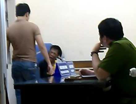 | Phạm Xuân Sơn (giữa) tại cơ quan điều tra. |