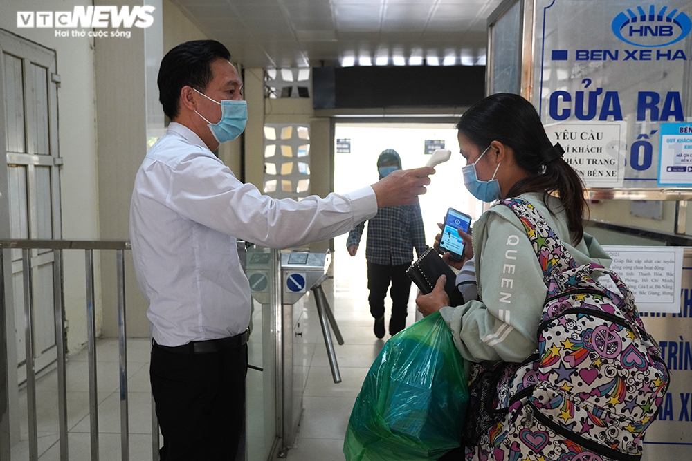 Hành khách được kiểm tra thân nhiệt tại bến xe. (Ảnh minh hoạ)
