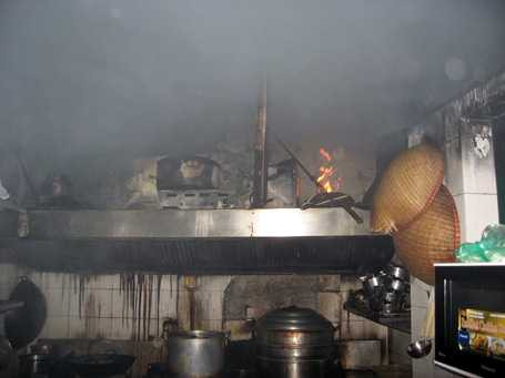 Ngọn lửa xuất phát từ khu bếp của nhà hàng, thiêu rụi nhiều đồ đạc, khiến khói bốc lên mù mịt.