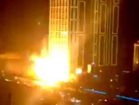 | Chỉ chưa đầy 10 phút sau, toàn bộ hệ thống đèn trang trí bên ngoài tòa nhà bị tắt phụp |