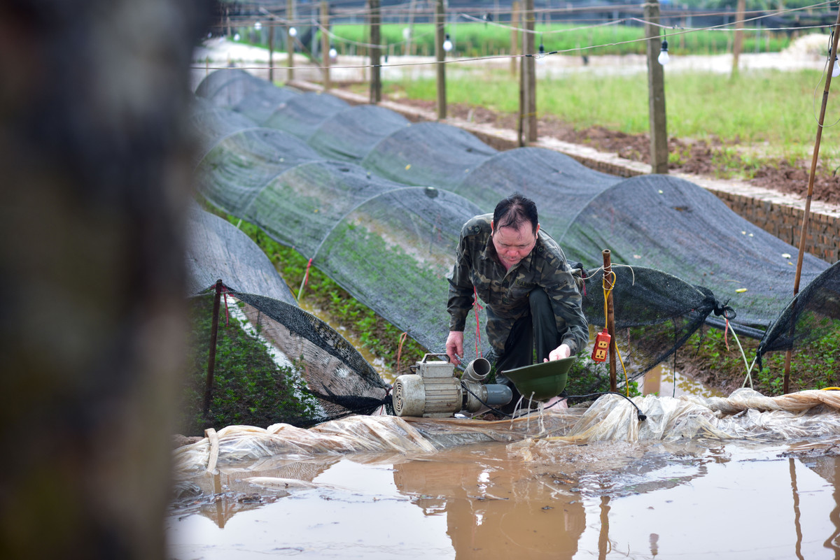 Quanh làng Tây Tựu, đâu đâu cũng là cảnh máy bơm làm việc hết công suất để xả nước ra ngoài, cứu những vườn hoa khỏi cảnh ngập úng quá lâu.