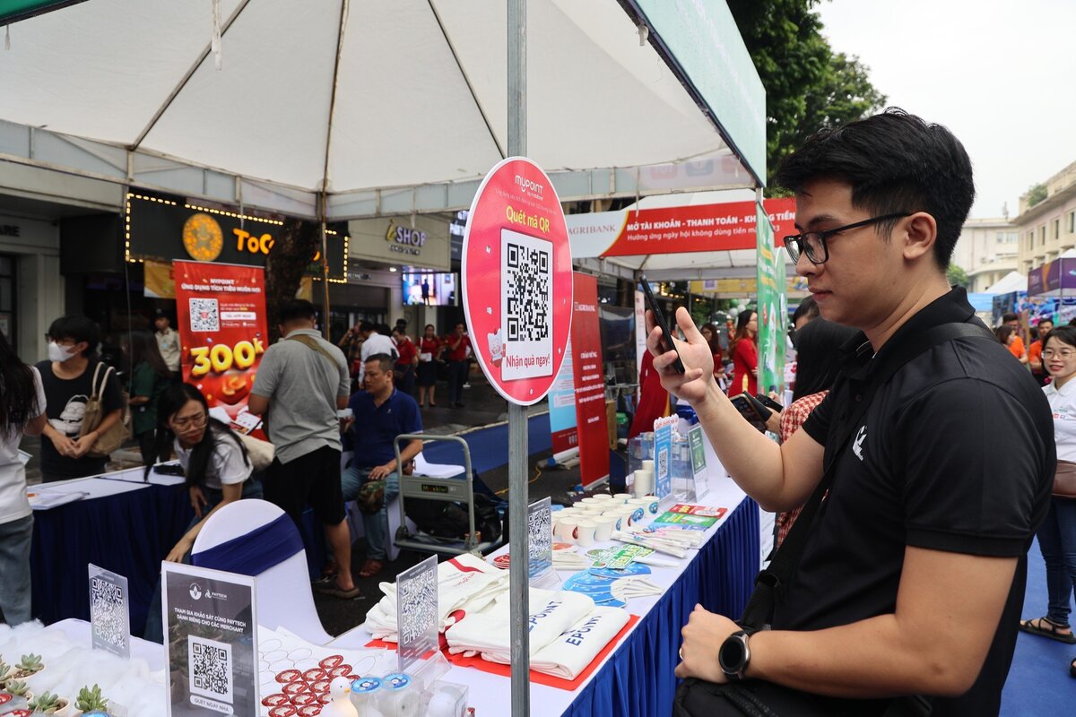 "Đến hôm nay, khi thực hiện giao dịch trên những tuyến phố của quận Hoàn Kiếm, dù có mức chi phí dưới 10.000 đồng, người dân cũng có thể thanh toán bằng các hình thức chuyển khoản hoặc quét mã QR với các hộ kinh doanh và doanh nghiệp.