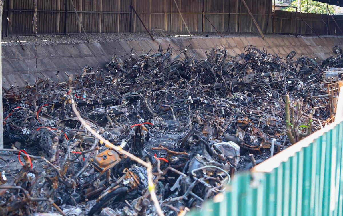 Hàng trăm xe máy cháy rụi dưới gầm cầu Vĩnh Tuy.