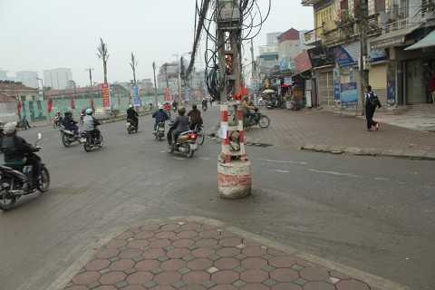 Vì cột điện nằm ngay giữa lòng đường nên mỗi lần đi qua đây, mọi phương tiện luôn phải luồn lách để tránh. Việc lưu thông trên tuyến đường này vào buổi tối càng trở nên khó khăn và nguy hiểm.