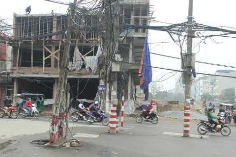 'Ma trận' cột điện, dây chằng chịt khiến người dân không biết đi đường nào.