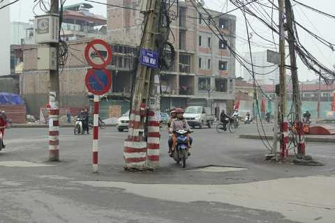 Cột điện nằm án ngữ ngay giữa ngã ba đường