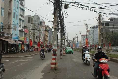 Cuối năm 2013, tuyến phố này được hoàn thành mở rộng và đi vào hoạt động, thế nhưng giữa lòng đường vẫn trơ lại hàng trăm cột điện, cột nào cũng chằng chịt dây bao quanh.