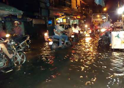 Nhiều chủ phương tiện đã phải lội nước bằng chân trần do xe bị chết máy