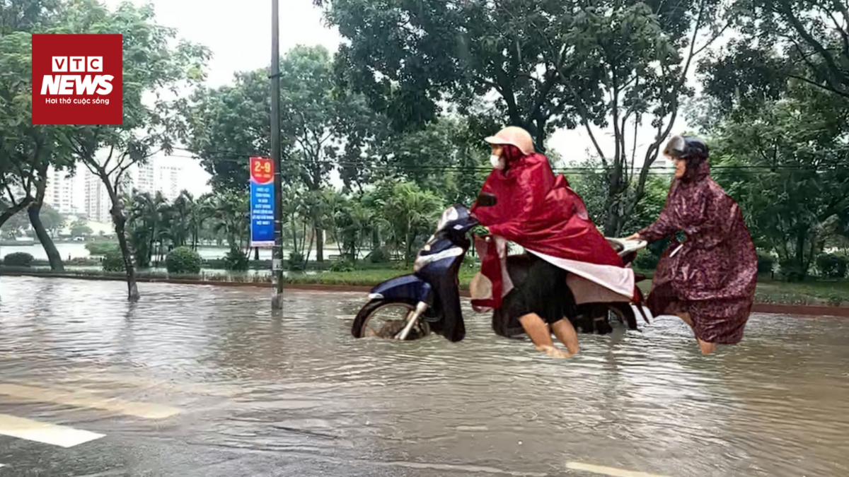 Hà Nội mưa như trút nước: Xe cộ chôn chân, người dân nháo nhào gọi cứu hộ