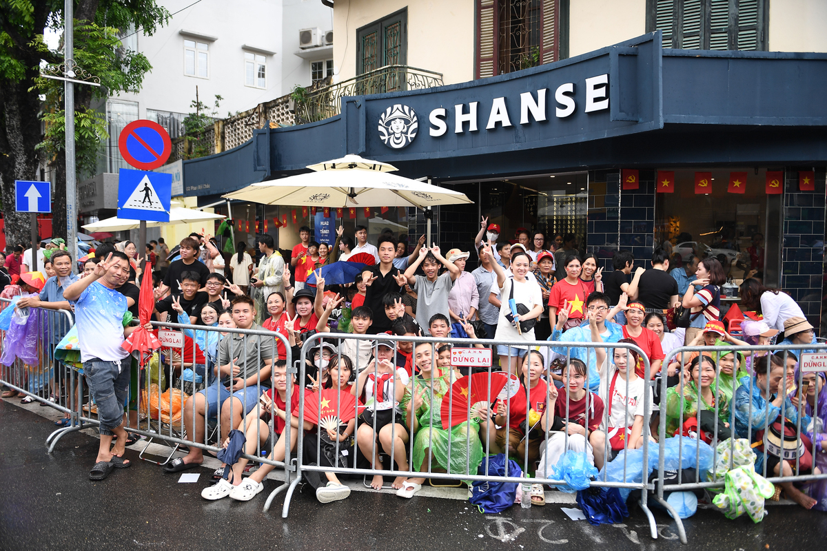 Chiều 1/9, còn gần 15 tiếng nữa mới đến giờ diễn ra Lễ diễu binh A80, các tuyến đường quanh Quảng trường Ba Đình đã ken đặc người dân tìm chỗ ngồi. Mưa lớn bất chợt trút xuống không làm không khí chờ đợi giảm nhiệt.