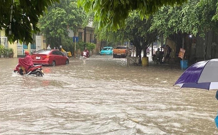 Tuyến đường Lương Thế Vinh ngập nặng sau mưa lớn.