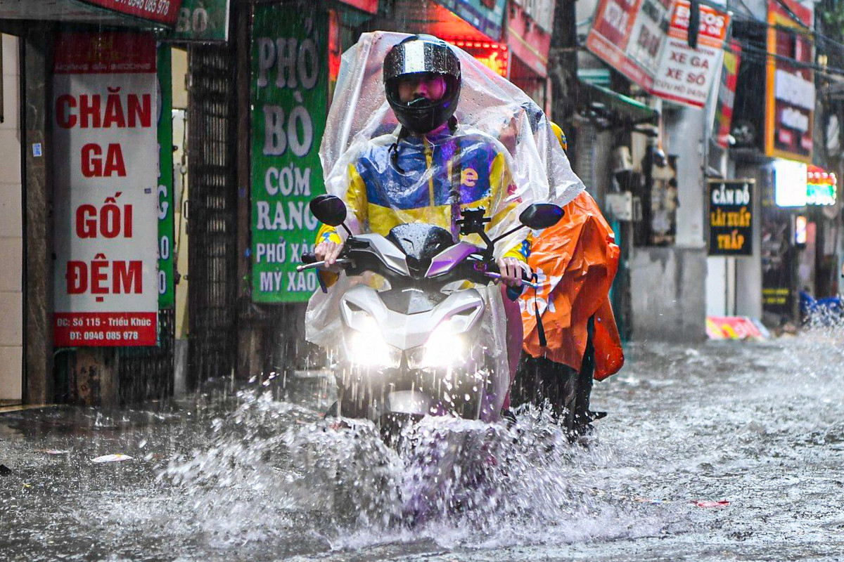 Ngày 23/7, ảnh hưởng của áp thấp nhiệt đới (suy yếu từ bão số 2), Hà Nội mưa tầm tã từ sáng đến chiều vẫn chưa có dấu hiện ngớt khiến nhiều tuyến đường ngập nặng.