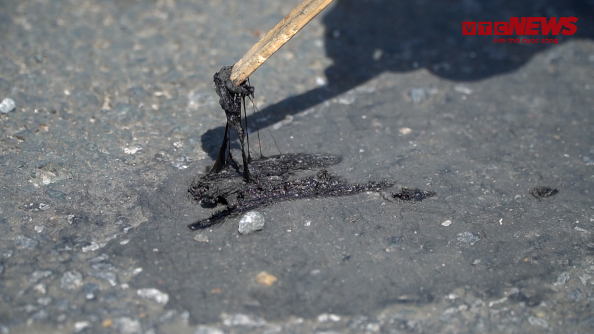 Nhựa trên tuyến đường Lê Quang Đạo (Hà Nội) tan chảy, khi thành phố đang trải qua đợt nắng nóng đỉnh điểm, có nơi lên đến gần 50 độ C.