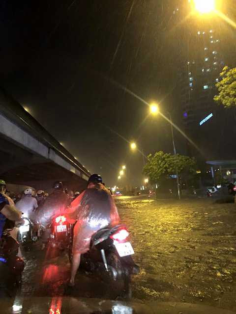 Đường Vũ Trọng Phụng (Thanh Xuân, Hà Nội) cũng bị ngập úng. - (Ảnh: Otofun)