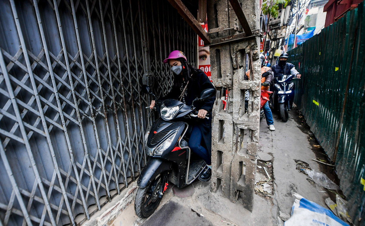 Có những đoạn, lối đi chỉ đủ cho 1 xe máy lưu thông khiến người dân gặp vô vàn khó khăn. Trên tuyến đường này thường xuyên xảy ra tình trạng ùn tắc. Chị Nguyễn Thị Hạnh (Nguyễn Trãi) cho biết, chị thường xuyên chở con đi học qua đường này, công trình chắn đường khiến việc đi lại rất khó khăn. Đặc biệt, xuất hiện nhiều ống cống rất nguy hiểm cho người tham gia giao thông.